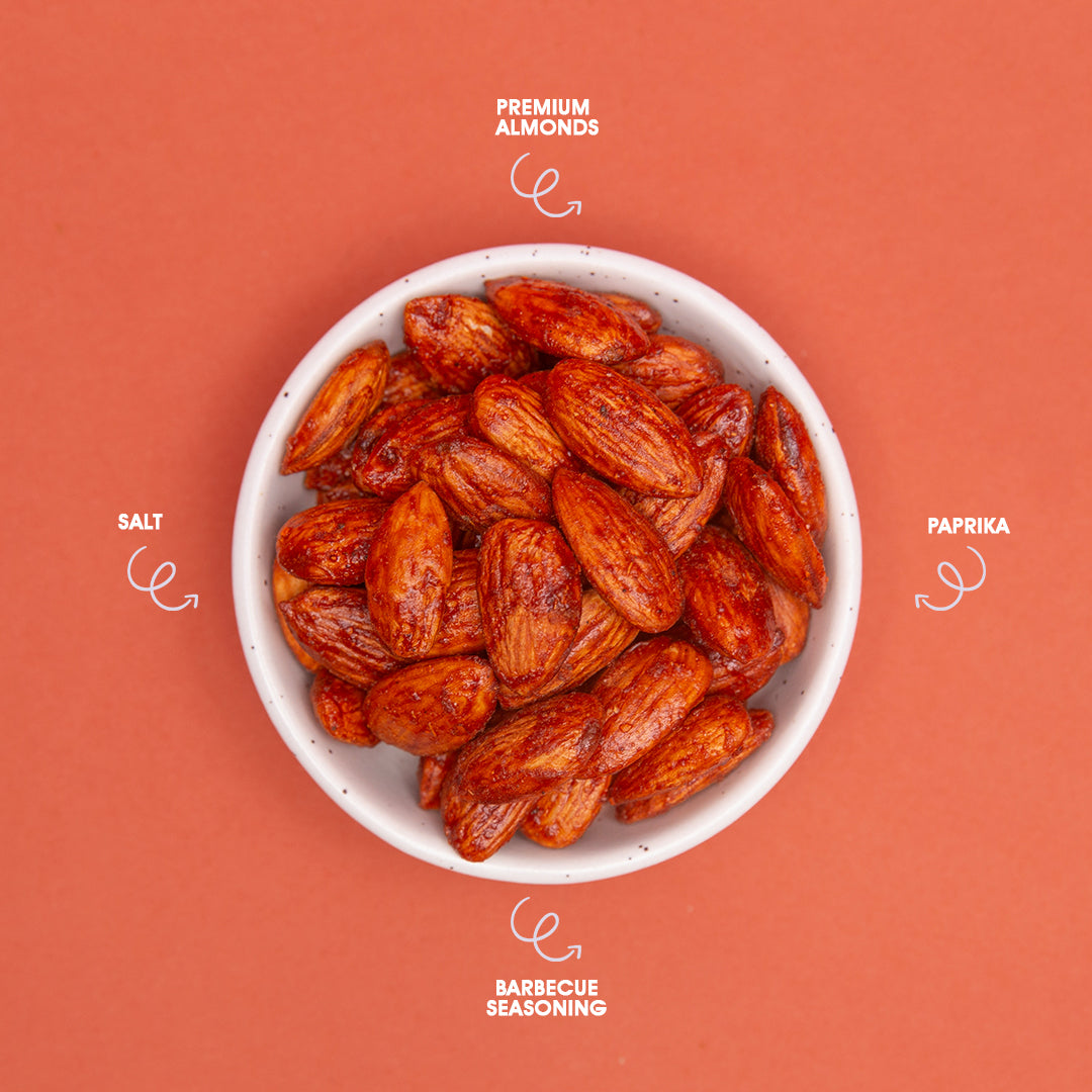 Enjoy the delicious flavor of our BARBECUE ALMONDS! Dry roasted with no added oils, they're the perfect healthy snack. Plus, they're gluten-free and vegan, making them a guilt-free choice for any diet. Satisfy your cravings without sacrificing taste or nutrition.
