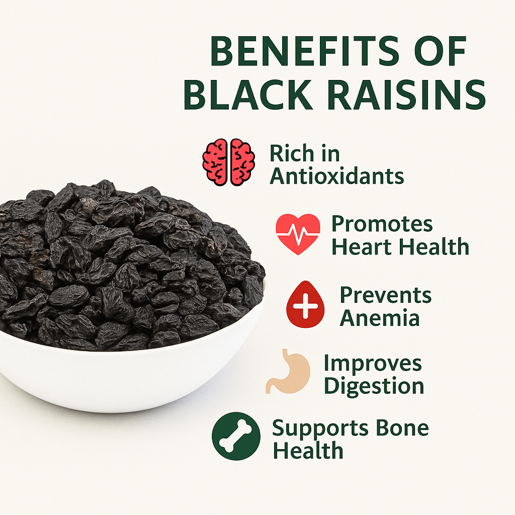 Black raisins are natural powerhouses of nutrients. They’re not just a tasty snack, but also offer essential vitamins and antioxidants that your body needs daily.