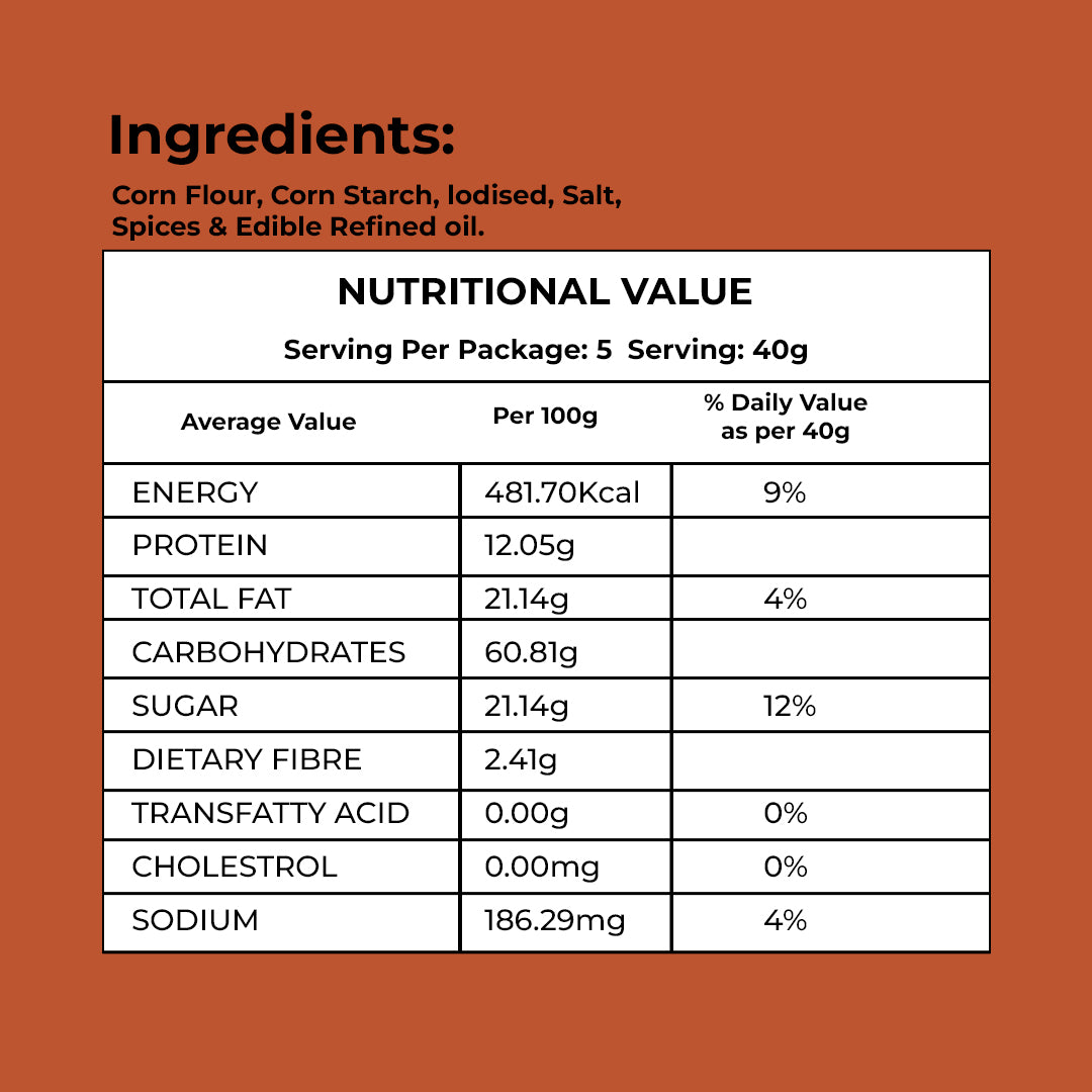 Say hello to your new favourite snack – Corn Shells made from a nourishing blend of corn and millet! These uniquely shaped, crunchy shells are baked—not fried, delivering a deliciously crisp texture without the grease or guilt.