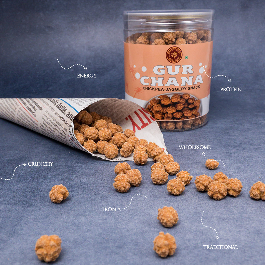Gur Chana is a healthy and delicious snack made from jaggery-coated roasted grams. Rich in protein and essential nutrients, it provides the perfect balance of energy and nutrition for any time of the day. Enjoy the traditional taste and goodness of Gur Chana guilt-free.