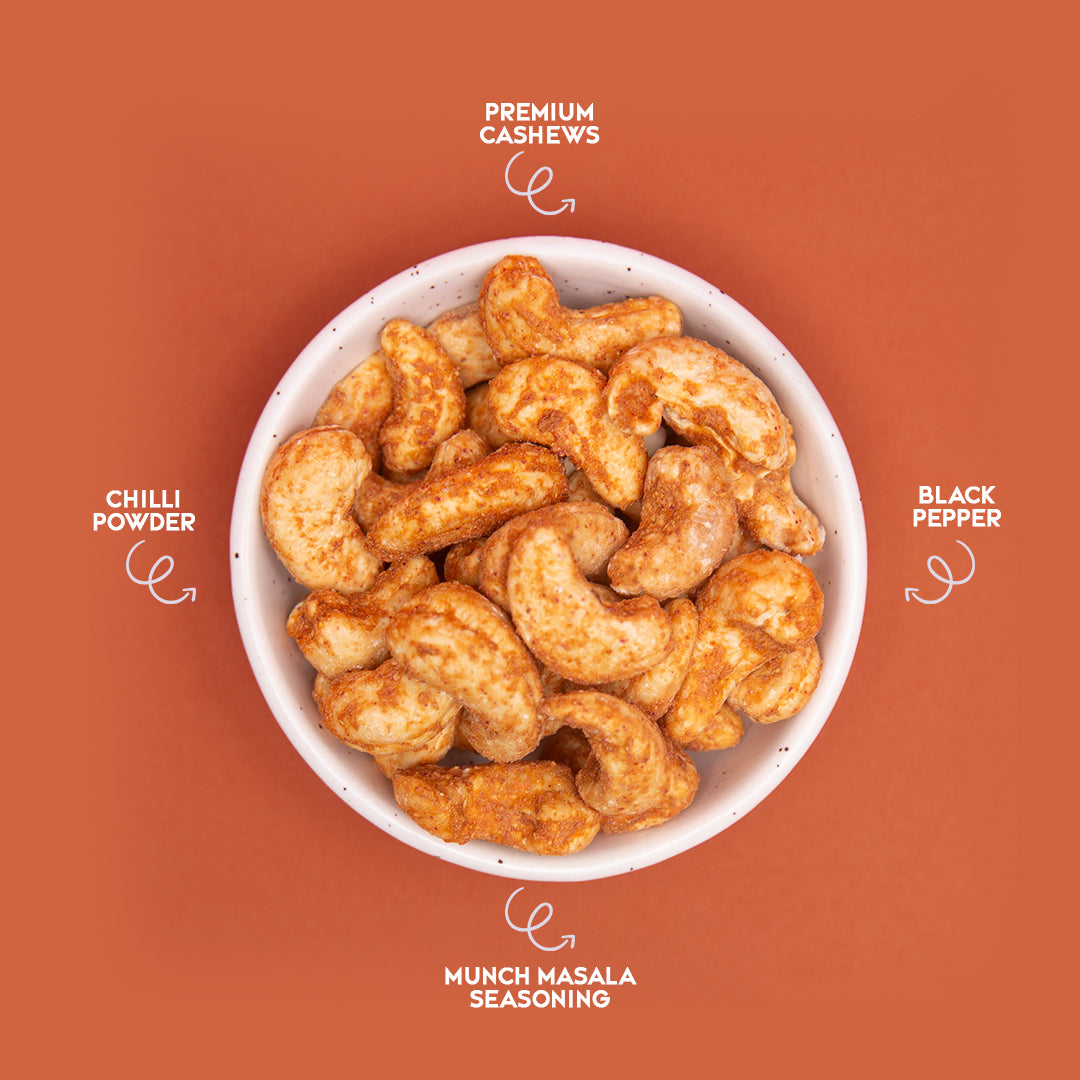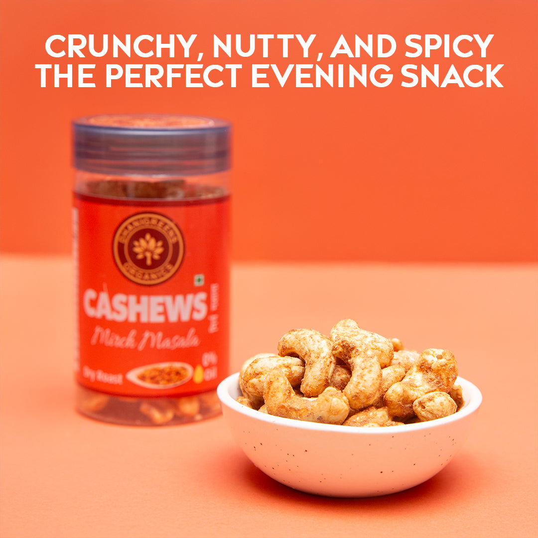Introducing MIRCH MASALA CASHEWS, a delicious and healthy snack option. Dry roasted with no added oil, these cashews are gluten-free and vegan, making them suitable for a variety of dietary needs. Enjoy the spicy masala flavour while reaping the benefits of a nutritious snack.