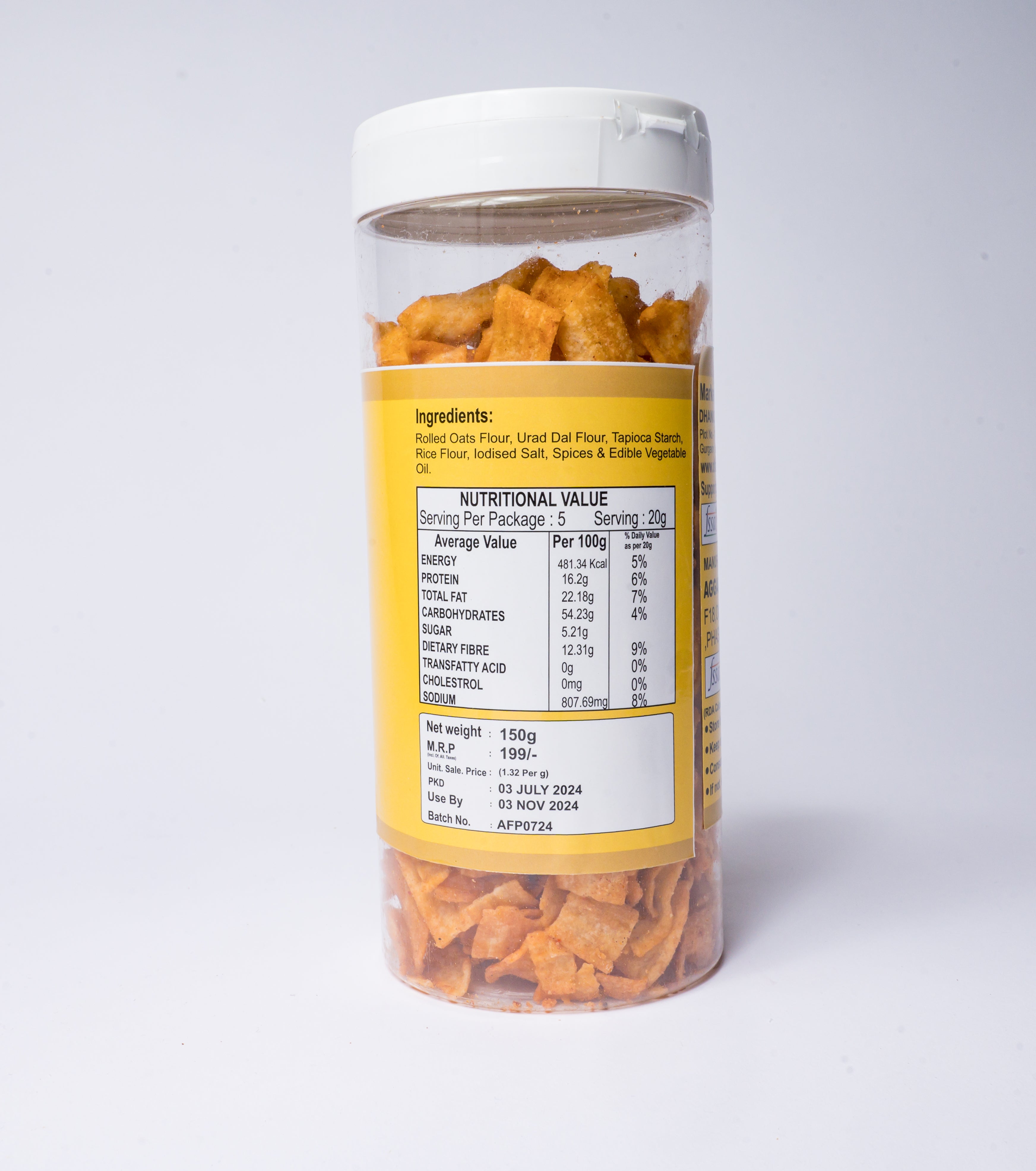 Naturally gluten-free and full of fibre, our oats chips are a perfect choice for the health-conscious snacker. Whether you're at home, on the go, or packing a lunchbox, these chips offer a tasty, guilt-free alternative to traditional snacks.